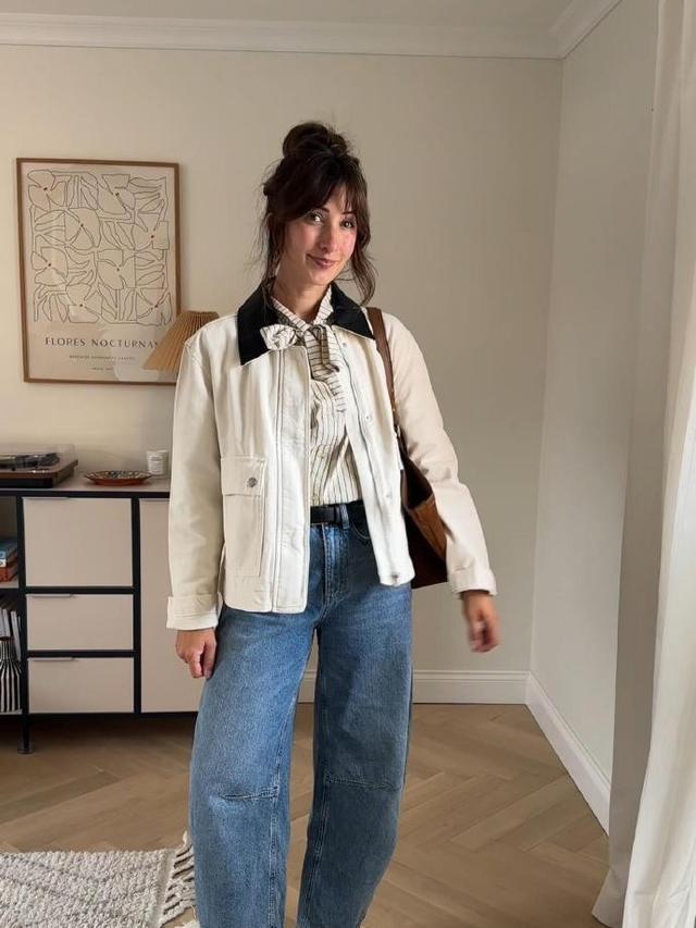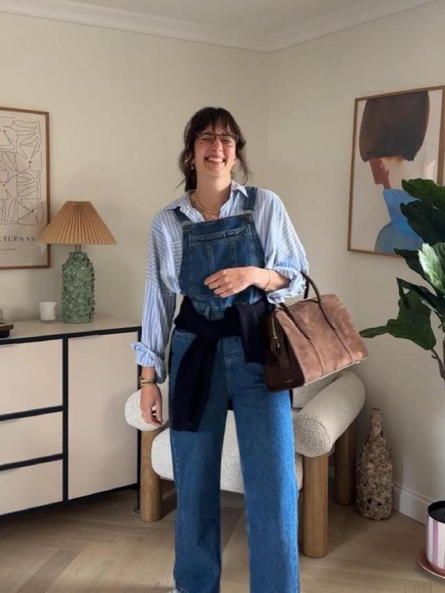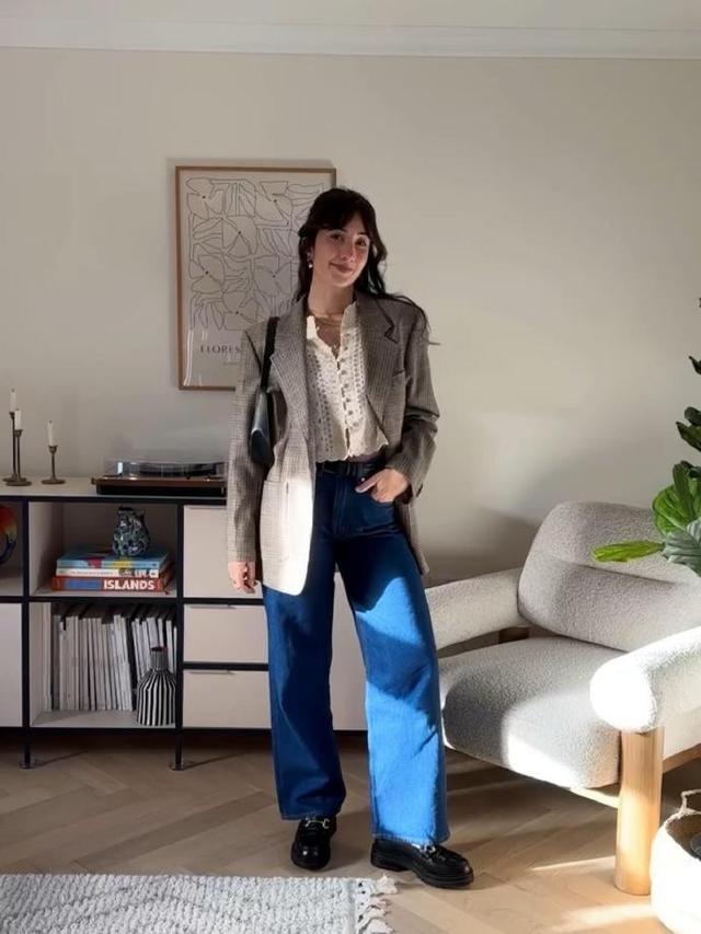 rosieannbutcher 的穿搭核心,是对经典元素的极致运用与舒适至上的理念。她偏爱用牛仔、格纹、大地色这些英伦风标志性元素作为基底,再通过叠穿赋予造型生命力:卡其色短款外套搭配白色阔腿裤,休闲中带着利落;牛仔背带裤叠穿条纹衬衫,腰间系上针织衫,随性又减龄;棕色皮夹克内搭格纹衬衫,配上米色阔腿裤,复古又沉稳。这些看似简单的组合,在她的搭配下,既保留了周末的慵懒感,又充满了复古艺术感。